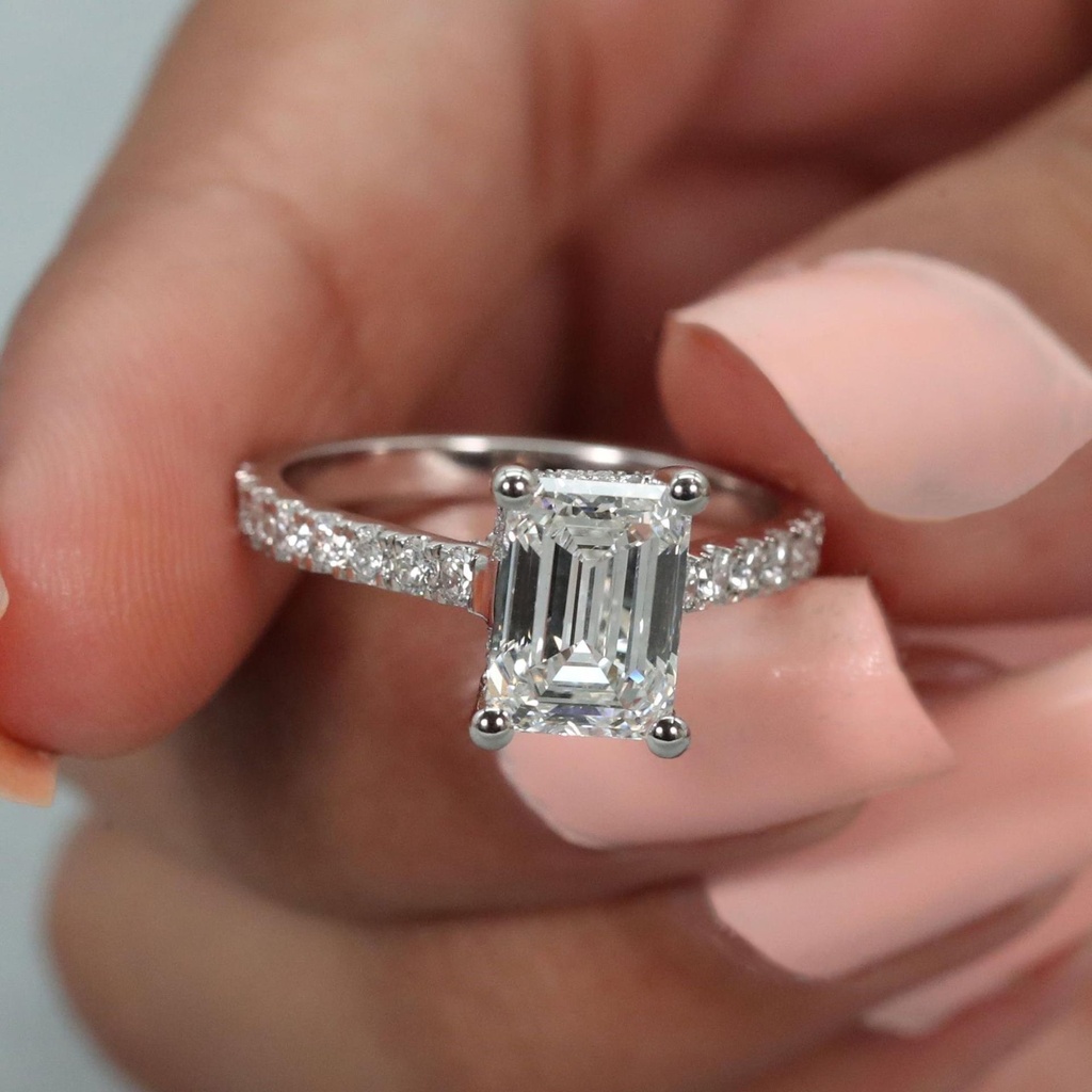 | Main Stone | Loose Moissanite White Clean Emerald Cut 8.00 MM x 6.00 MM અથવા Lab Grown Diamond G-H VVS-VS Emerald Cut 8.00 x 6.00 MM |