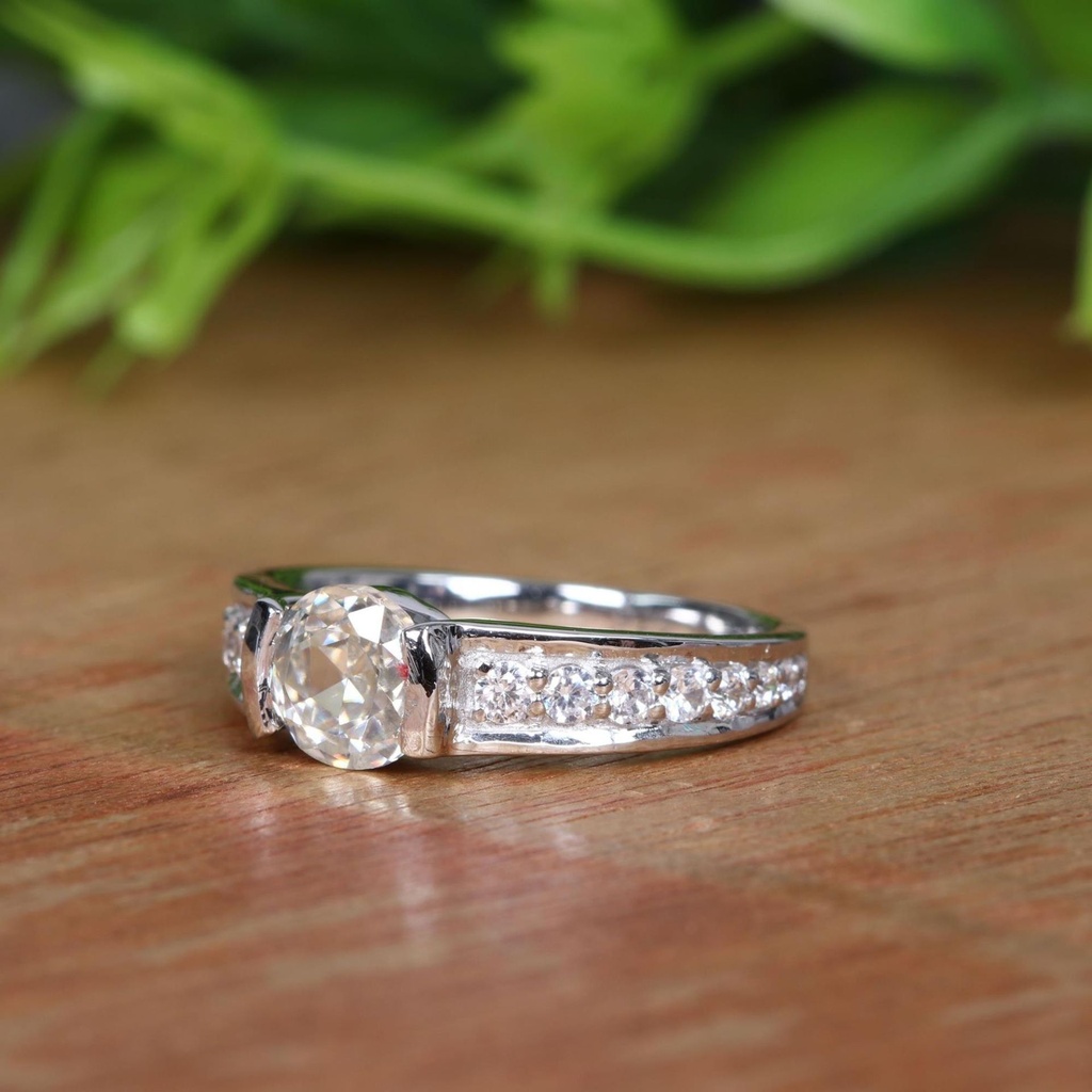 Round Rose Cut Diamond With Accents Engagement Ring for Women