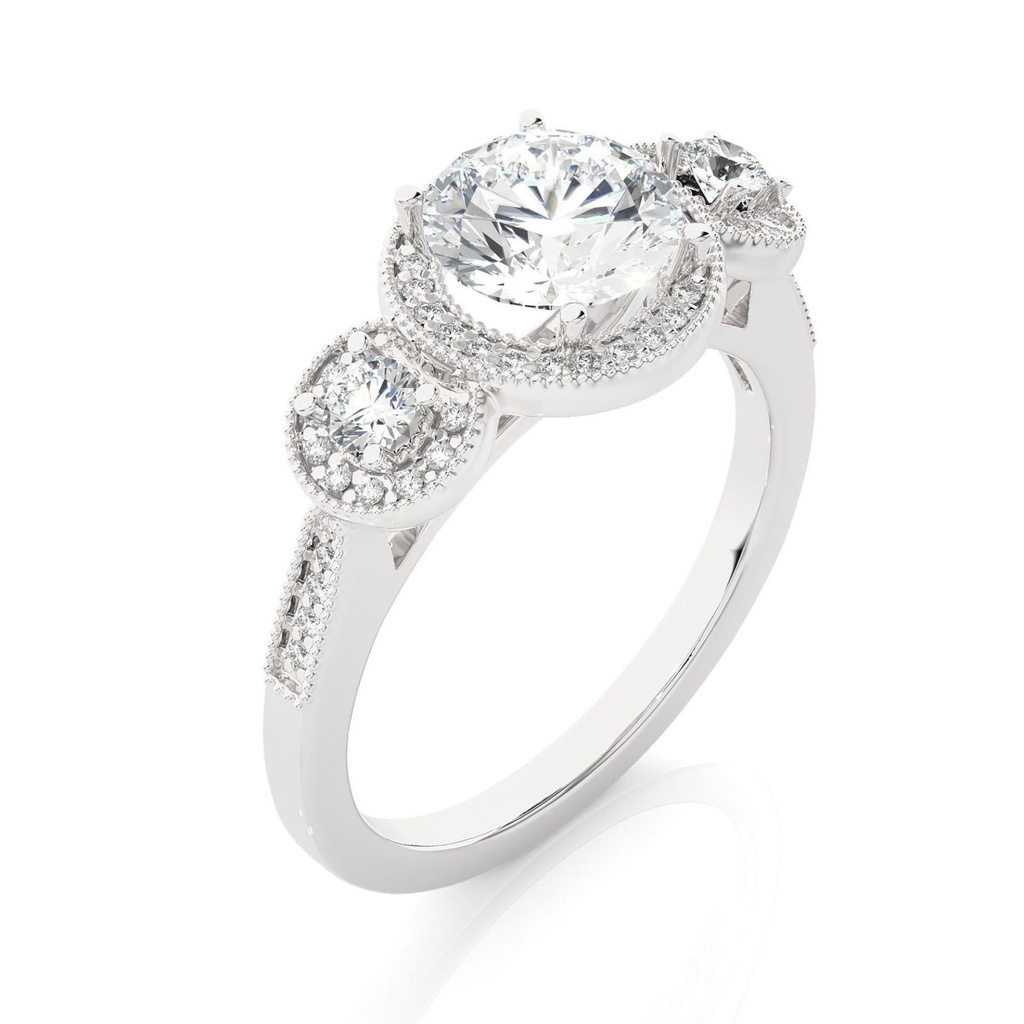 3 Stone Yellow Round Cut In 925 Sterling Silver Ring For Engagement