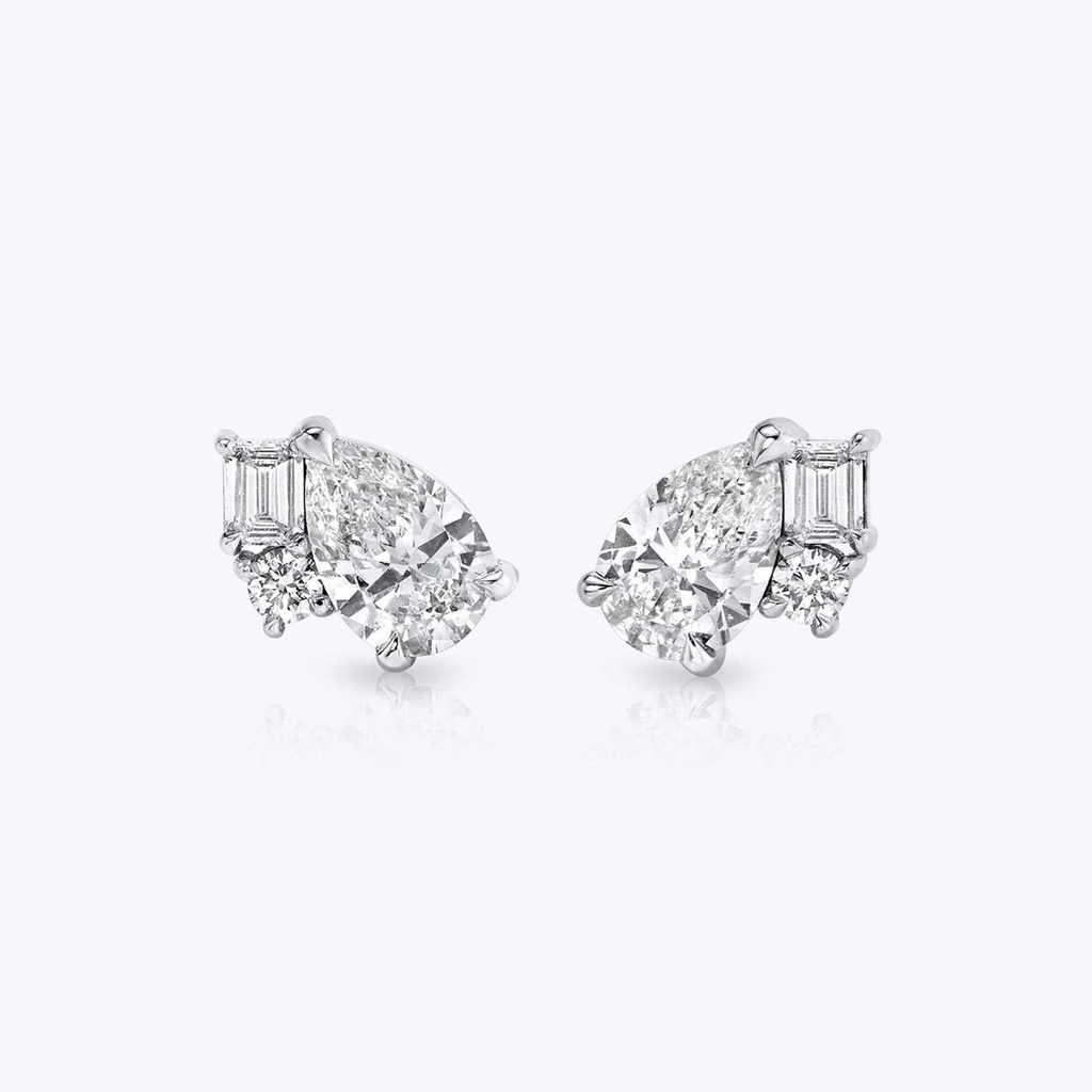 Pear And Round And Emerald Cut Diamond Unique Stud Earrings For Women